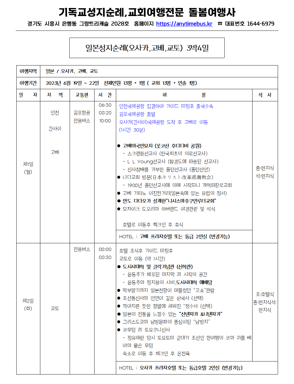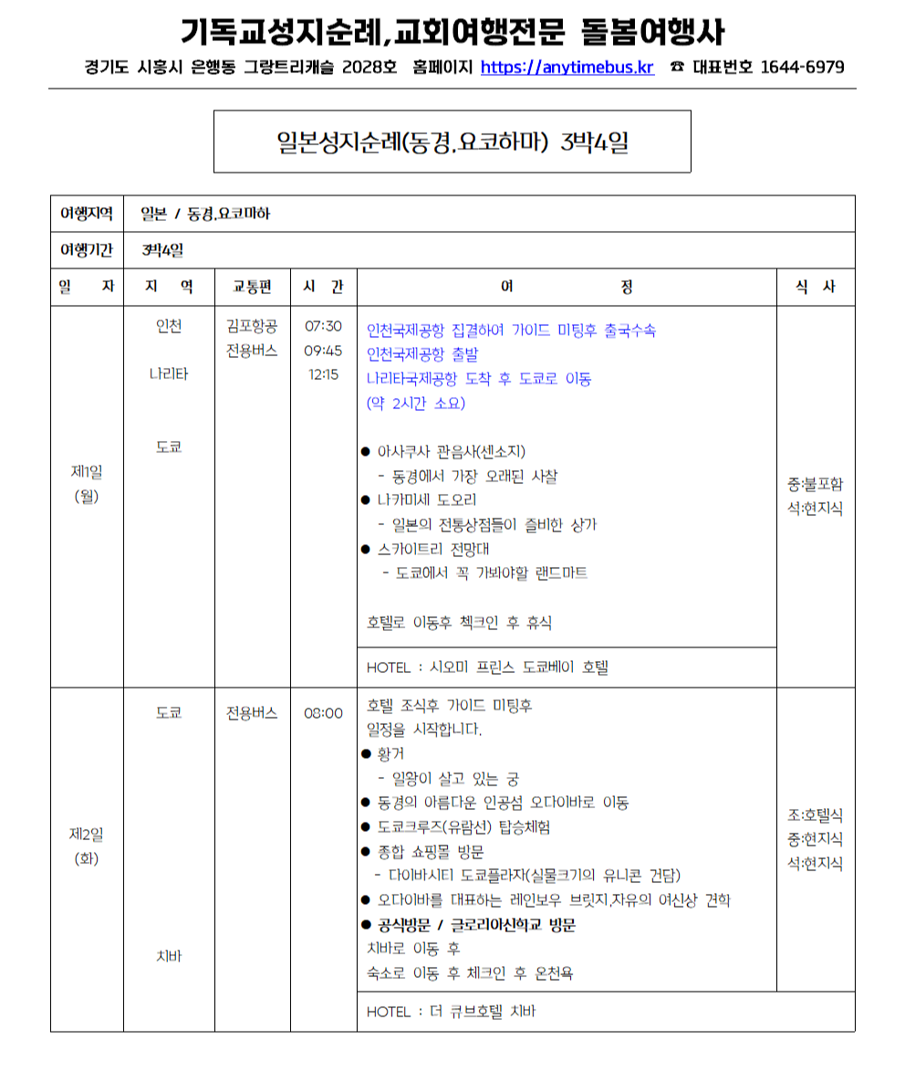 일본성지순례 여행일정 안내<돌봄여행사>1644-6979