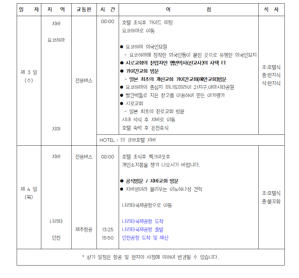 ● 1코스 : 동경,요코하마 3박4일 일정표